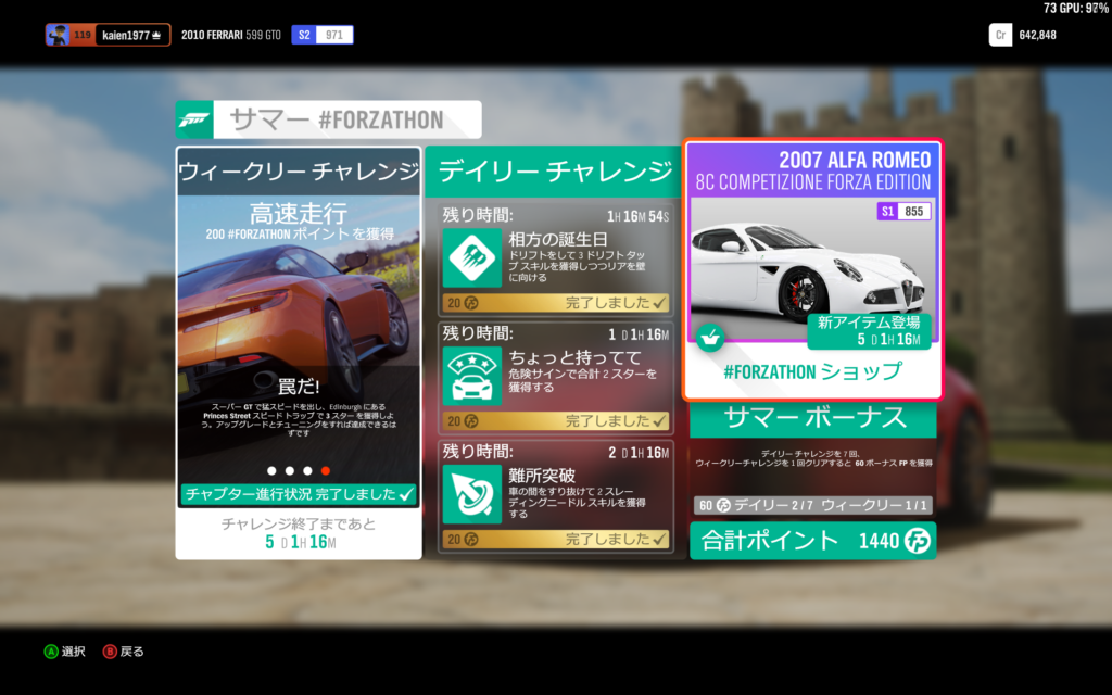 今週のForzathonのウイークリーチャレンジも無事クリアしました。