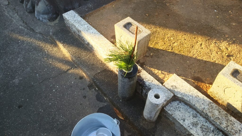 お墓に松等をお供えして、完了。