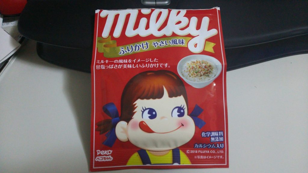 会社で、ミルキー味のふりかけをいただきました。