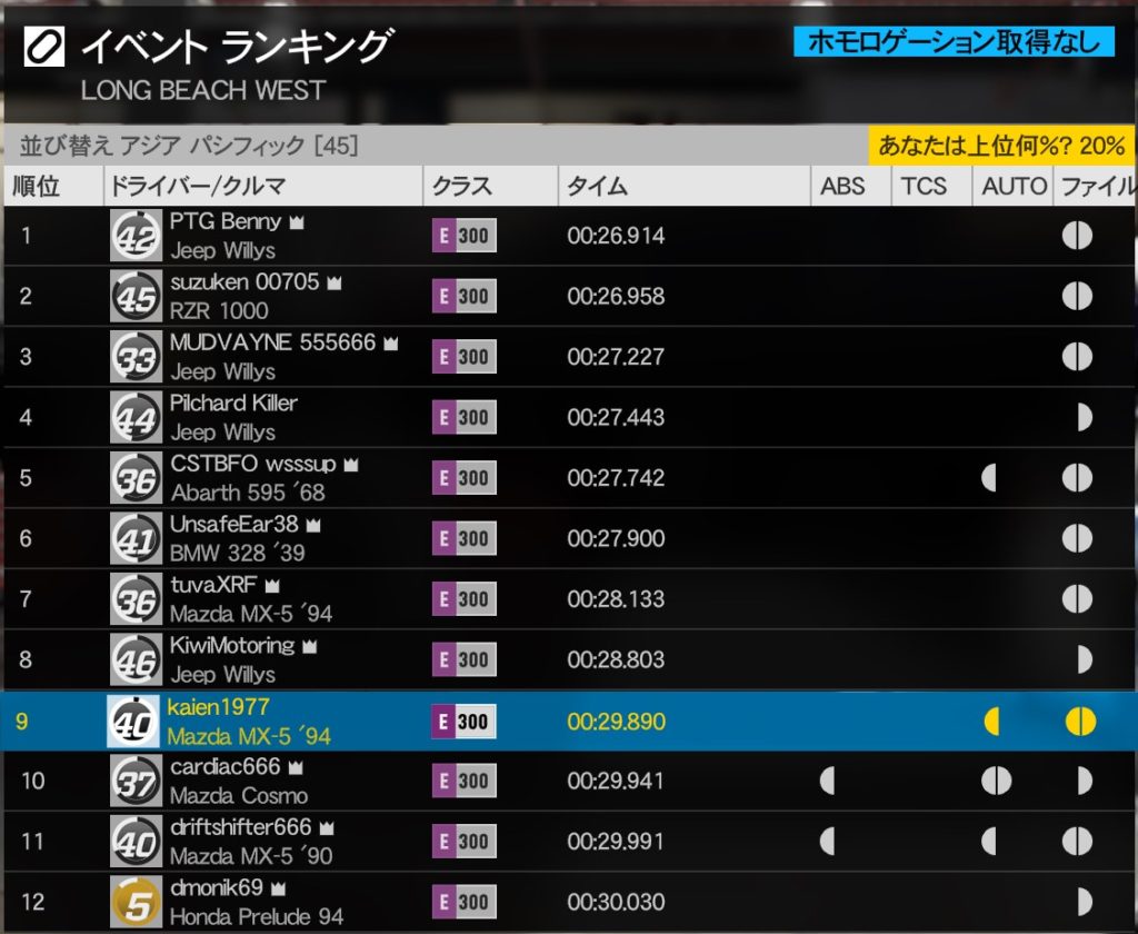 継続してプレイしているFM7ですが、ロングビーチのウエストコースのタイムアタックで、順位が画面一枚目に乗りました。