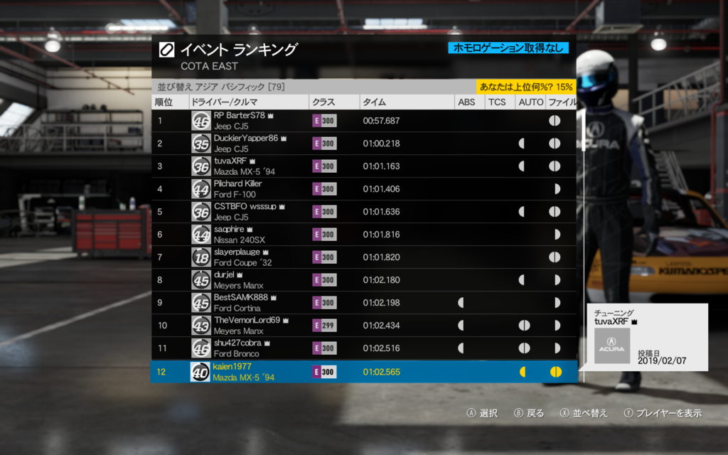 アジアパシフィックで、表示一枚目。12位になりました。今まで13位というすごく惜しい順位だったのでとてもうれしいです。