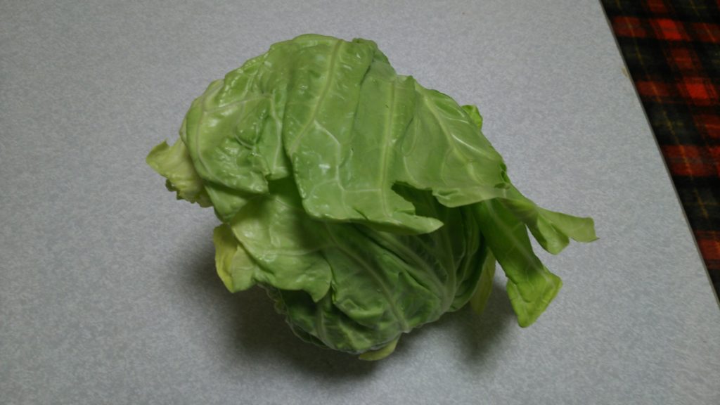 今日は、畑でキャベツが収穫できました。
