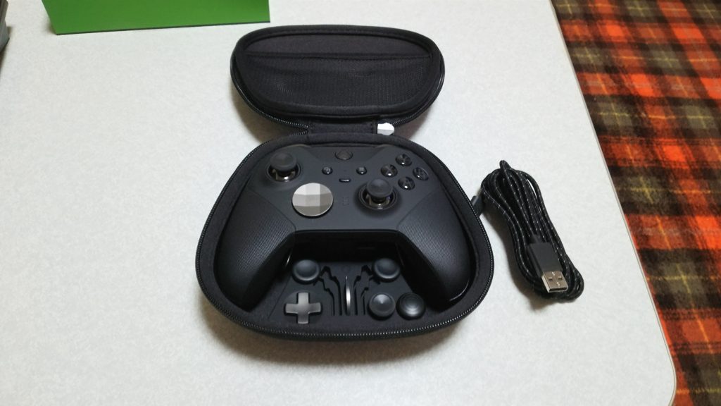 開封すると、コントローラやジグ一式がポーチに入っています。このポーチにUSBコードを接続してコントローラを充電することができます。