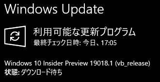 本日、ウインドウズのインサイダービルド19018が降ってきました。