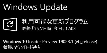 今日、会社から帰ってきたら、インサイダービルドの19023.1が降ってきました。