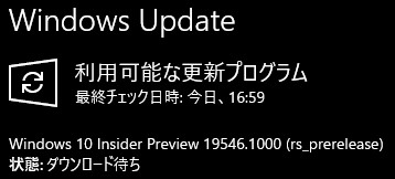 本日、Windows10のインサイダービルド19546が降ってきました。