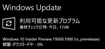 本日、Windows10のインサイダープレビューのFastリングに、19569が落ちてきました。