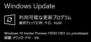 今日、Windsows10のインサイダープレビューのFastリングに、19592.1001が降ってきました。