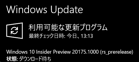 本日、インサイダープレビューのdevビルドに、20175が降ってきました。
