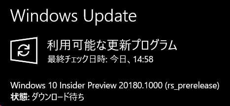 本日、インサイダープレビューにビルド20180が降ってきました。