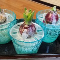 ついに、ヒヤシンスの3鉢目も開花しました。 花の色は、白のようですね。 今年は、赤、青紫、白となりました。信号機カラーですかね・・・見た目は。