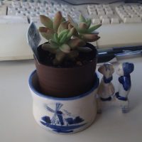 もう一つ、多肉植物があります。近くの100円ショップで購入。 かわいい容器は、別売りです。 この木も、大きくなってくれればいいなあと思います。 ちなみに、一週間に一回水やりです。