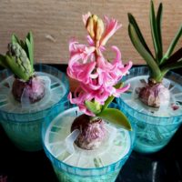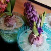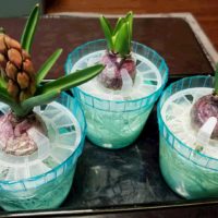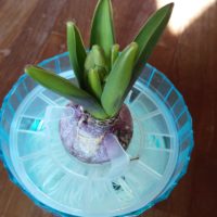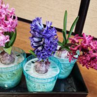 3/3 なかなか咲かなかった、ヒヤシンスの3株目ですが、ついに咲き始めました。 今度は紫。 これで、三株とも咲きました。紫はちょっと遅れたけど咲き始めて一安心。