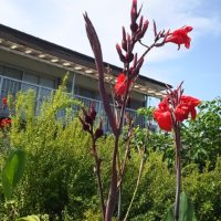畑にあるカンナに実ができました。 2mほどに成長しています。 こんな実ができました。もう少し熟すと、3つほどの種子ができるようです。 カンナは、実で株を増やすこともできるそうです。