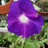 やっと、アサガオの花が咲きました。 花のふちがふやふにゃした品種だったようです。 なかなか大きくならなくて心配しましたが、やっと花が咲きました。