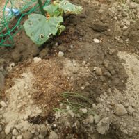 今日は、カボチャに花が咲きました。 もう小さな実もできています。 つるも、苗の時と比べて相当伸びました。 一緒に植えた、ウリにはまだ花が咲いていません。ウリハムシに困っています。